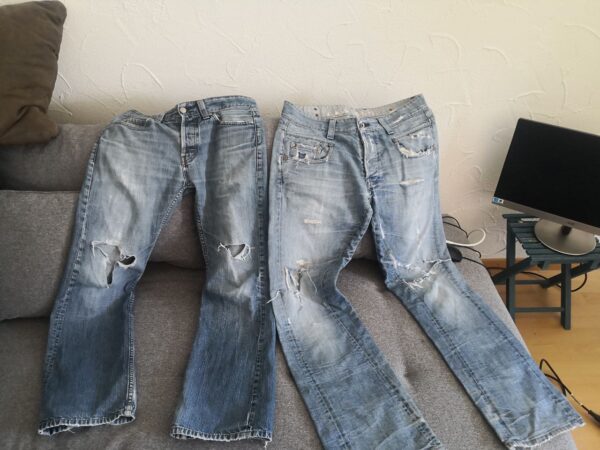 Rucksack aus gebrauchten Jeans Masse 30x20x40 cm 1 Fach aussen 1 kleines Fach innen 1 grosses Fach innen Träger aus 80% Polyester/Viscose und 20% Polypropylen